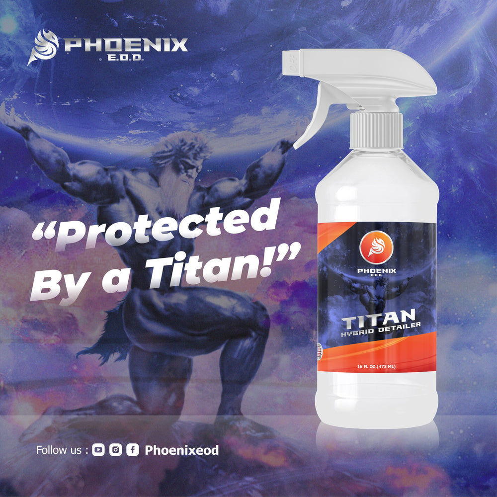 Titan SiO2 Hybrid Detailer is a unique water-based SiO2 detailer that contains a blend of silica dioxide, micro-silica, the latest synthetic polymers, and bonding agents to deliver a super-slick, long-lasting, hydrophobic surface. Perfect and completely safe for all paintwork, glass, plastic, rubber, and trim! Titan Hybrid Detailer is so easy to use and within minutes will impart a super slick hydrophobic layer that will shine like wax and protect like a sealant. The surface will remain resistant to detergents and contaminates for up to 3 months*! Effortless to apply, simply spray on and wipe off. Titan can be applied over existing sealants, waxes, and ceramic coatings to increase their hydrophobic properties, slickness, and gloss! The brilliance of Titan must be seen to be believed! Titan Hybrid Detailer: Shines like the Gods – Protects like a Titan!